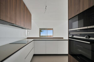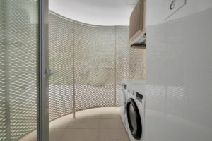 La cocina abierta y moderna está totalmente equipada con electrodomésticos de alta gama. Un pequeño lavadero cubierto con lavadora y secadora está conectado a la cocina.