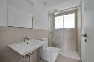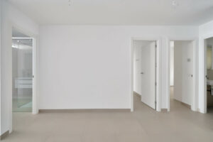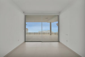 El apartamento incluye tres amplios dormitorios con armarios empotrados. El dormitorio principal, que tiene un baño en suite, y otro dormitorio tienen acceso a la terraza.