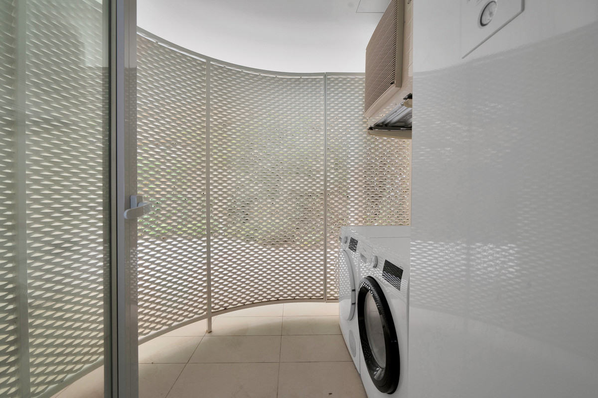 La cocina abierta y moderna está totalmente equipada con electrodomésticos de alta gama. Un pequeño lavadero cubierto con lavadora y secadora está conectado a la cocina.