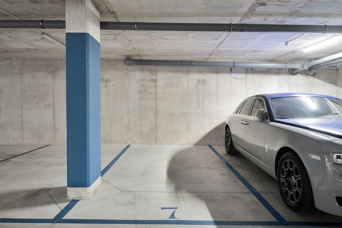 Dos plazas de aparcamiento subterráneo cubiertas y un trastero están incluidos en el precio. El apartamento no ha sido ocupado desde la finalización de la construcción, lo que le permite amueblarlo según su propio gusto.